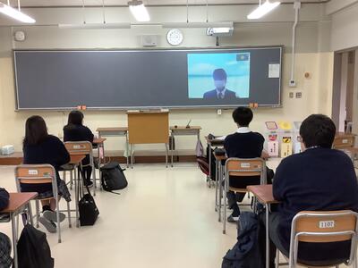 いつもの対面授業とは違い,「Google Classroom」を活用し,また生徒一人1台ipadを貸し出してオンライン形式での授業実施のため接続に時間がかかったことで,予定通り授業展開には行かない部分もありましたが,いつもと違った授業形態に新鮮な気持ちで授業を受けていたようでした。