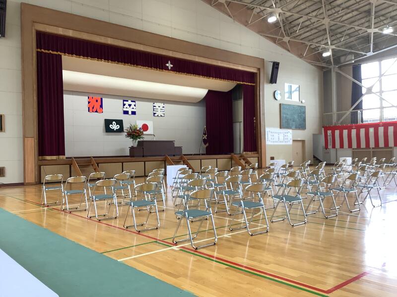数日前から在校生が心を込めて式場設営を行い,また保護者も1名のみ参加と