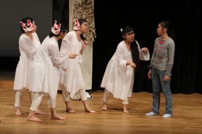 オリジナル脚本は,キャラクターからストーリー展開まで,すべて自分たちで考え,また,大道具や小道具や衣装もすべて準備をします。役につくキャストの他,音響や照明を担当するスタッフも必要なので,それぞれが一役以上の役割を担いながら,60分間に渡って演じきりました。
