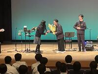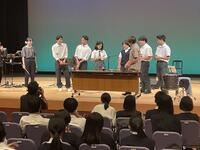 バンドの皆さんが奏でる10曲の豊かな音色に、生徒たちは皆、真剣な表情で聴き入っていました。演奏の途中に、世界の打楽器体験の時間も設けていただき、普段触れることのない楽器に実際に触れ、その音色を間近で感じることができました。
