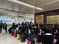 12月6日(金)、修学旅行最終日を迎えました。生徒たちは、午前中に大阪の歴史的シンボルである大阪城を見学し、その後、活気あふれる道頓堀を探索して最後の思い出を作りました。全ての行程を終え、新大阪駅から新幹線に乗り、帰路につきました。長時間の移動でしたが、大きなトラブルもなく無事に古川駅に到着。到着後の解散式をもって、4日間の修学旅行は無事終了しました。歴史と文化に触れ、友人との絆を深めたこの貴重な経験は、生徒たちにとって忘れられないものとなりました。