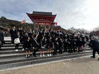 12月3日(水)、2学年は修学旅行に出発。校長先生のメッセージを胸に、古川駅から新幹線で京都駅へ向かいました。長時間の移動を経て無事に京都に到着後、一行は清水寺を訪問し、歴史的な景観から古都の文化の深さを体感しました。続いて訪れた金閣寺(鹿苑寺)では、池に映る黄金の美しさに感動しました。京都での散策を終え、宿泊地であるラ・ジェント・ホテル大阪ベイへ移動しました。大きなトラブルもなく初日を終え、翌日の活動に向けて体を休めました。