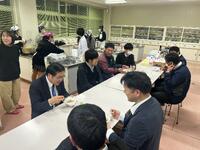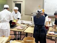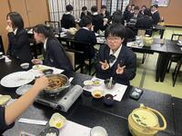 12月17日、地域活動部(調理研究班)が、昨年度に続き「少し早い年越し蕎麦」を先生方に振る舞いました。蕎麦打ち全国大会への出場経験を持つ部員たちが、技を磨いた本格的な一杯を提供しました。そのクオリティの高さに、先生方からは「お店に出せる味」「本当においしい」と絶賛の声が上がりました(おかわりもいただきました)。生徒の真心がこもった温かい蕎麦は、先生方の心を癒やす素敵な贈り物となりました。