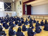 18歳成人、ネットトラブル、自転車の交通違反、違法薬物など、生徒にとって身近な事例をもとにした講話を頂きました。生徒は自分ごととして真剣に聞き、講話を通して、身近に危険があること、誰でも加害者、被害者になる可能性があること、命に関わること、ルールを守ることの重要性を学び、教員、生徒ともに身の引き締まる、貴重な時間になりました。ご協力いただきました講師の方には、お忙しい中、本校のために資料等準備いただきまして感謝申し上げます。