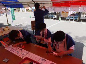 本校生徒のまつりへの参加は今年で4年目を向かえました。ボランティアスタッフとして参加した生徒は,アンケート及びゴミ収集係,子ども縁日,景品の抽選のアシスタント,体験ブースなど様々なお手伝いをさせていただきました。