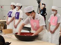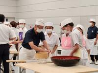 8月2日(水)に東京都立産業貿易センター浜松町館を会場に第13回全国高校生そば打ち選手権に本校,地域活動部(調理研究班)の生徒5名が参加してきました。昨年度,秋から蕎麦打ちを地域の方から教えて頂き,少しずつ上達してきた生徒たちです。この大会での経験を活かして,次年度,再チャレンジし,上位入賞を目指して頑張ってくれると思います。